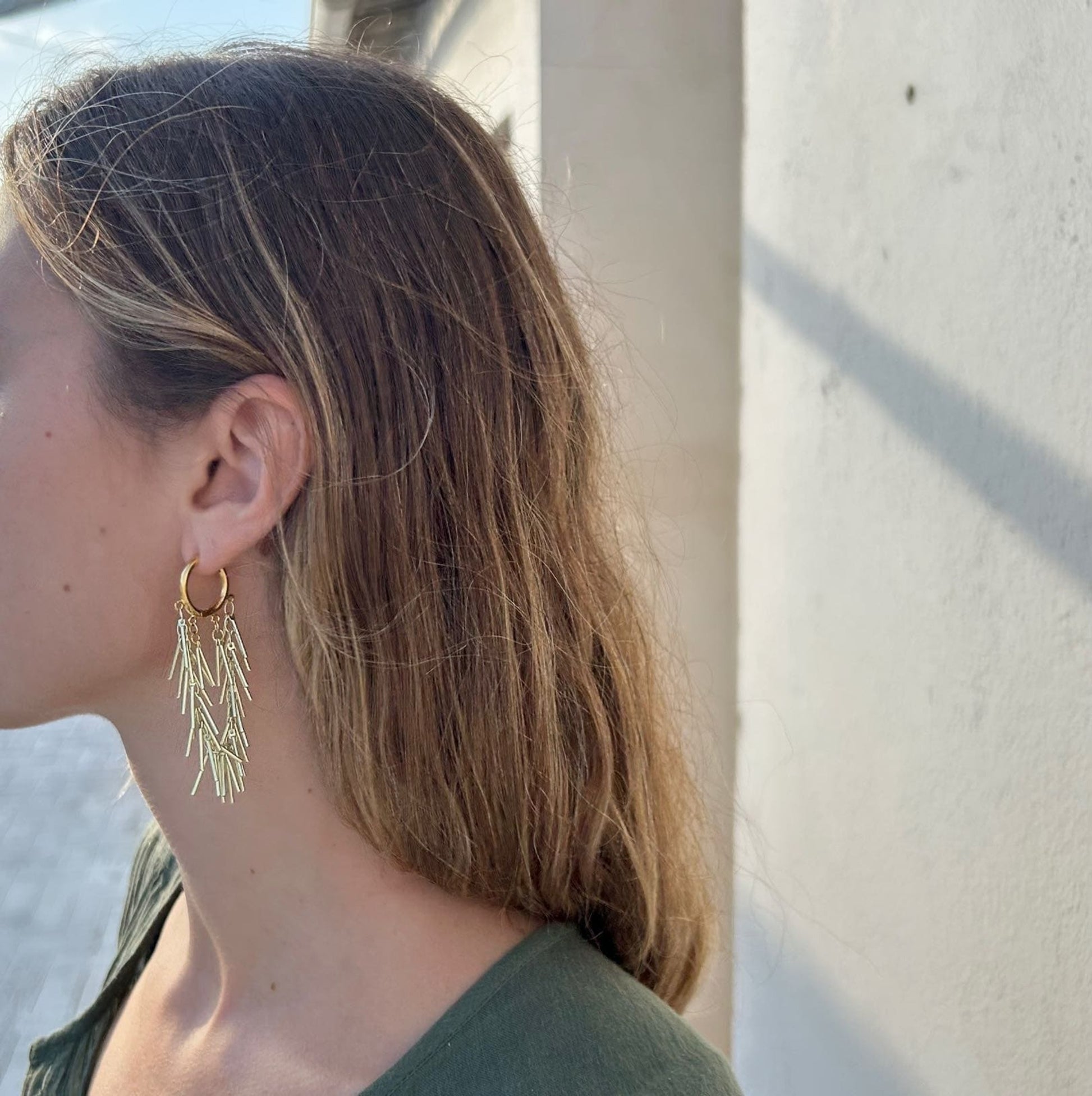 Aros de 20 mm. con cadena de flecos metálicos en dorado.