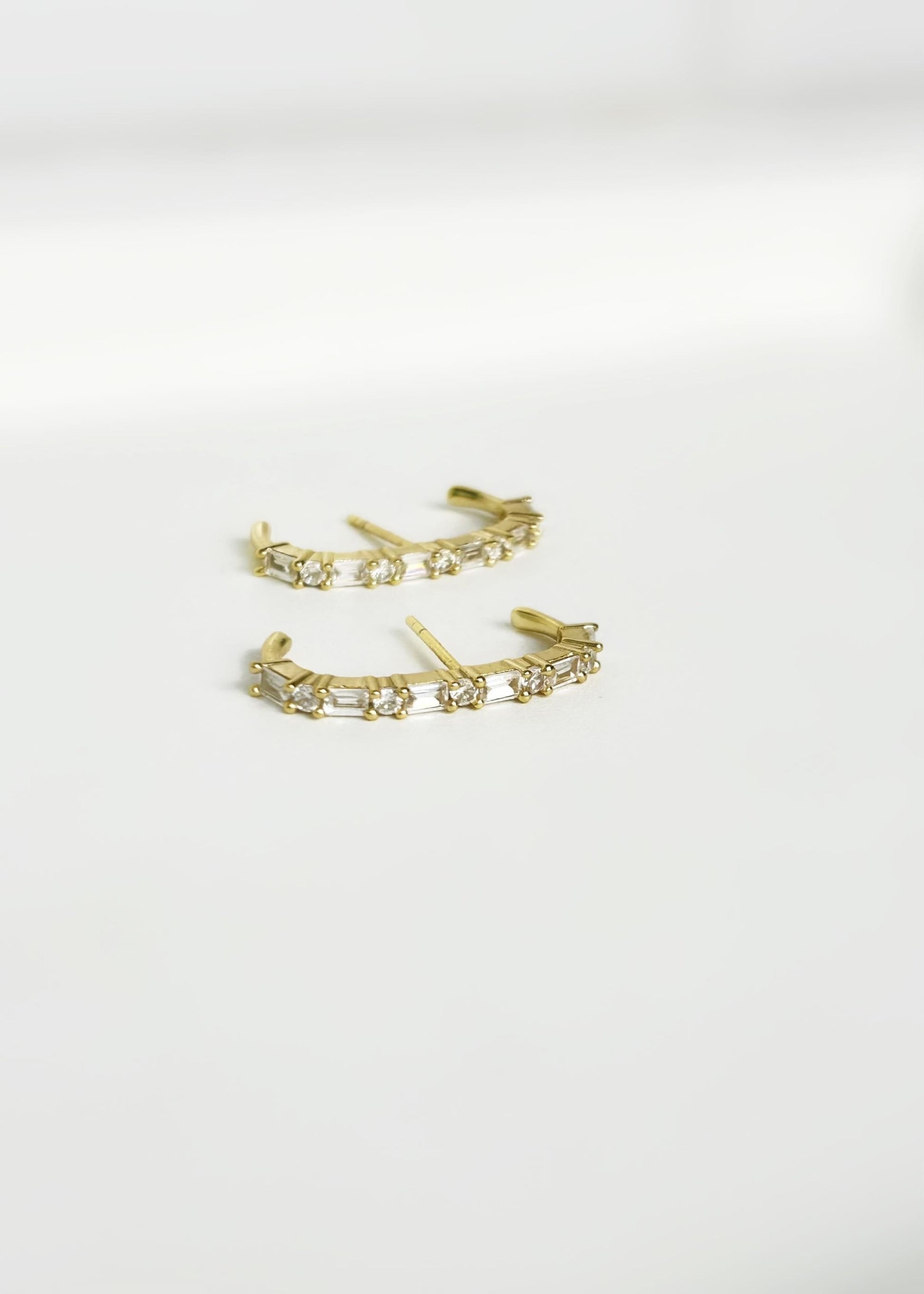 Pendientes en forma de ear cuff. Plata con baño de oro y circonitas en forma baguette.