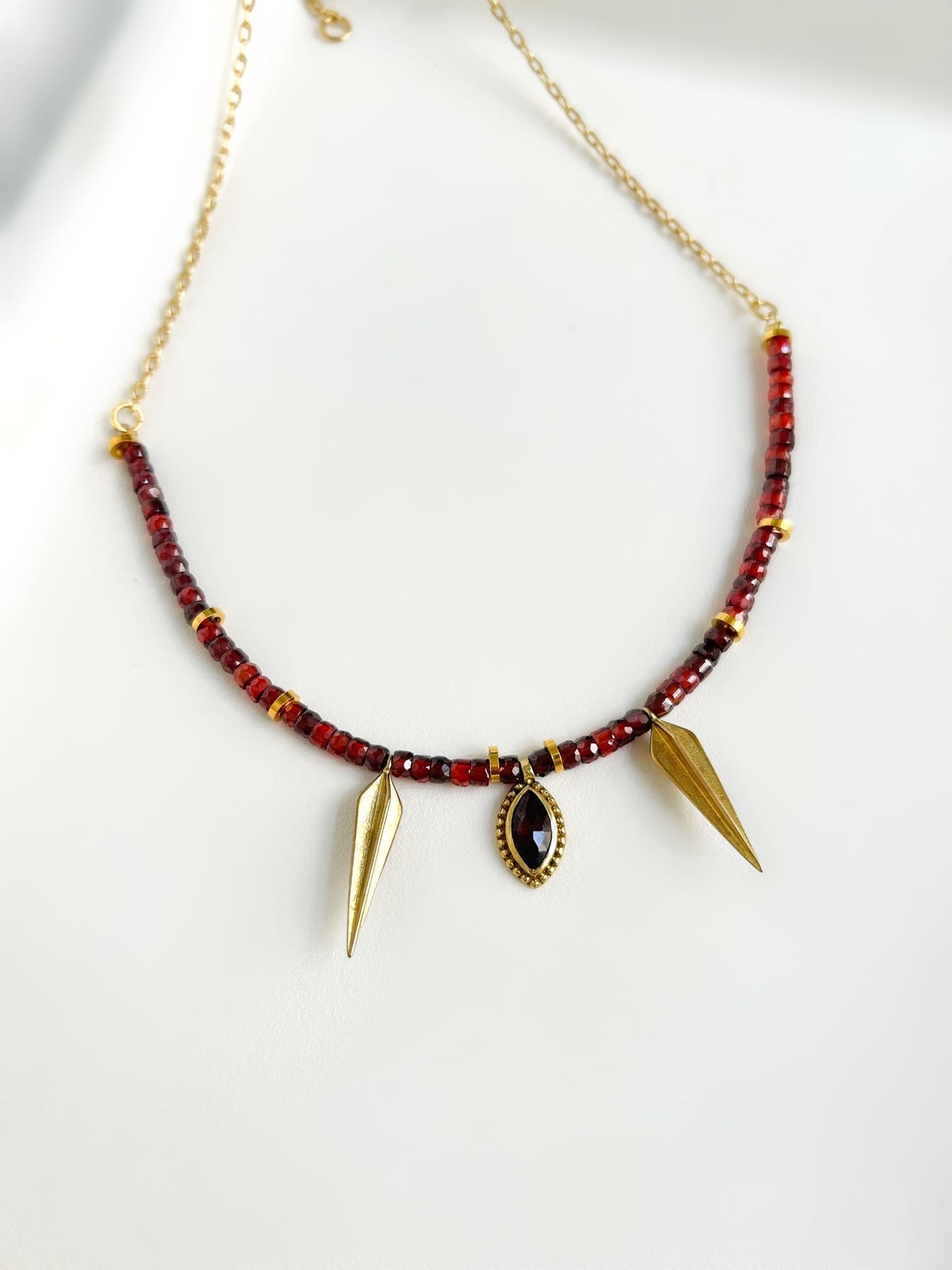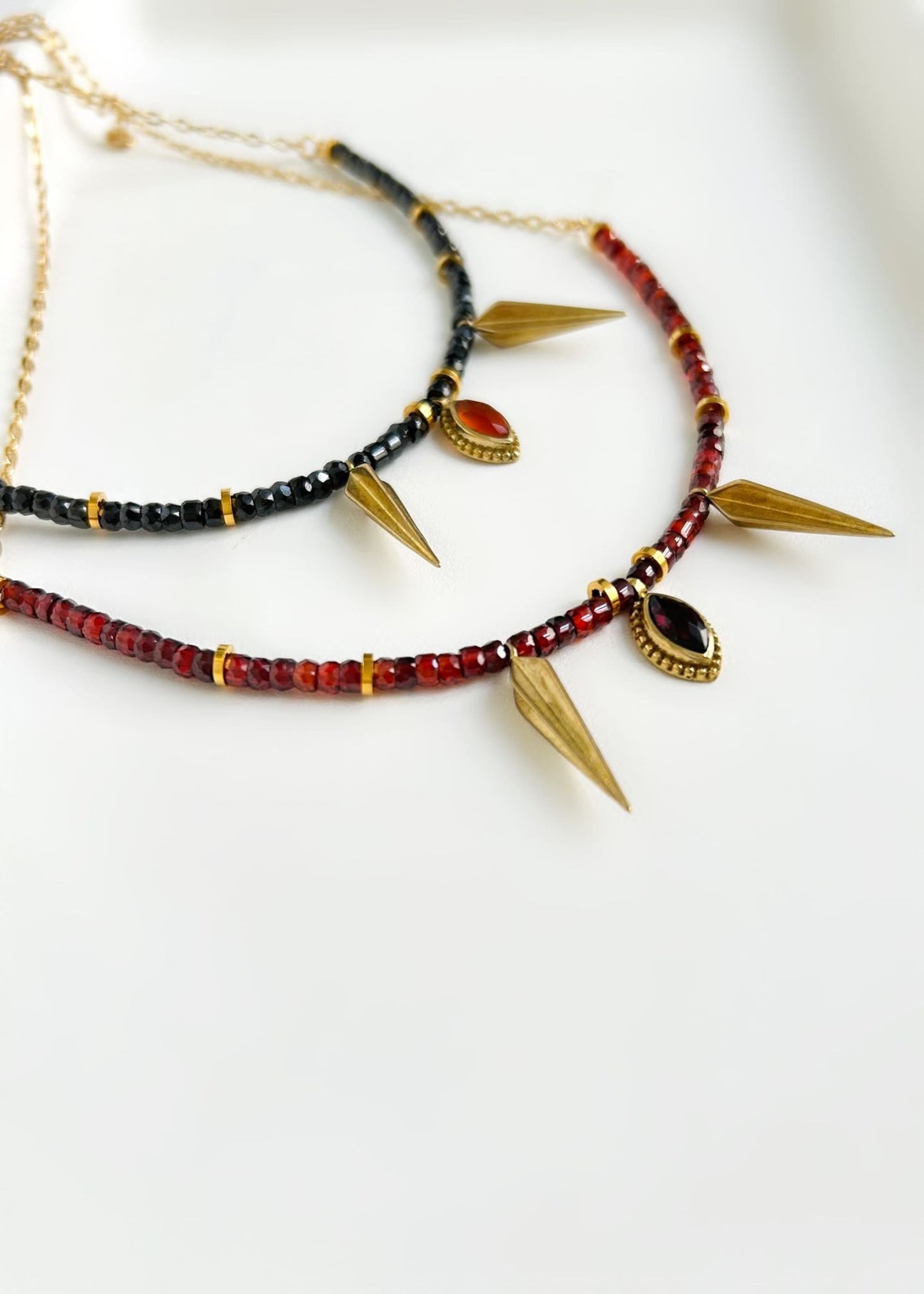 Gargantilla de piedras y cadena dorada con charms en metal y piedra.