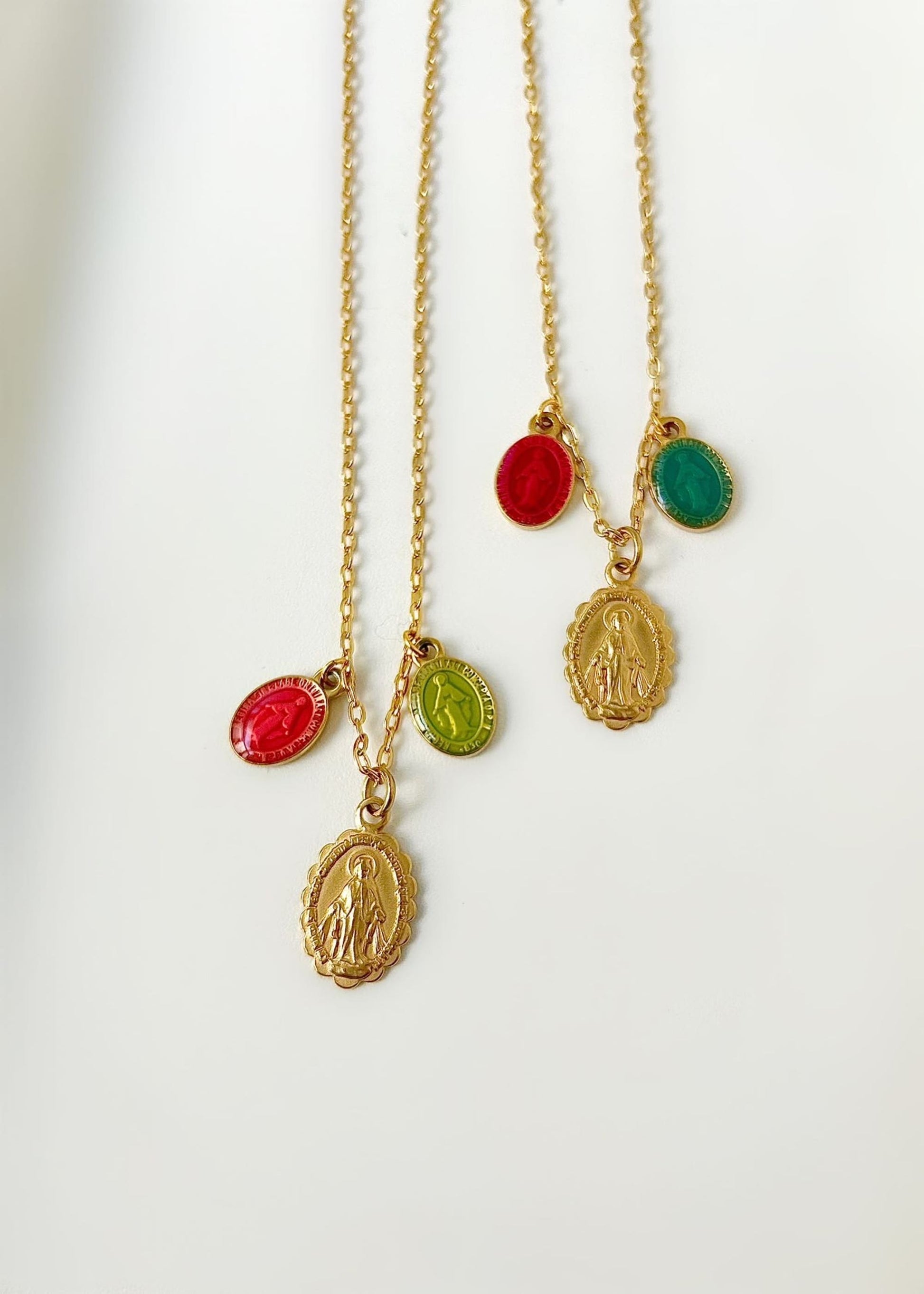 Gargantilla Virgen Milagrosa con tres medallas en diferentes tamaños.