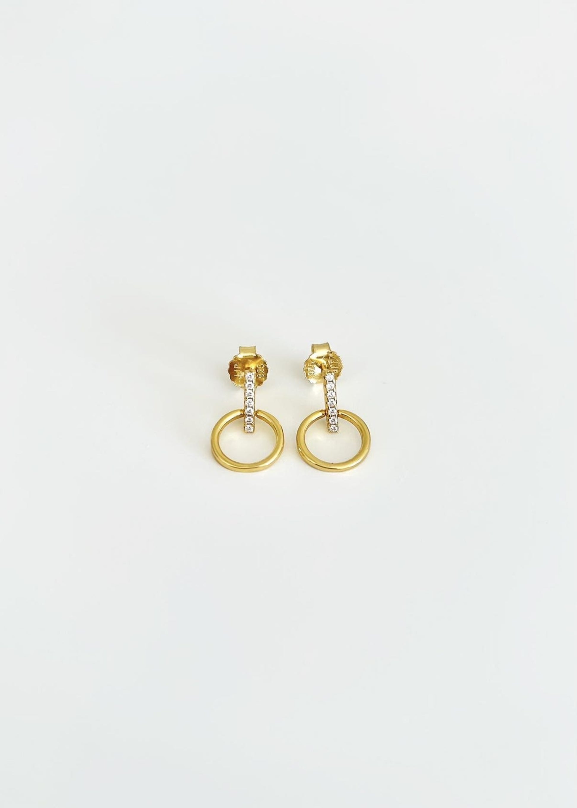 Pendientes de plata con baño de oro, con barra de circonitas y colgante de aro.