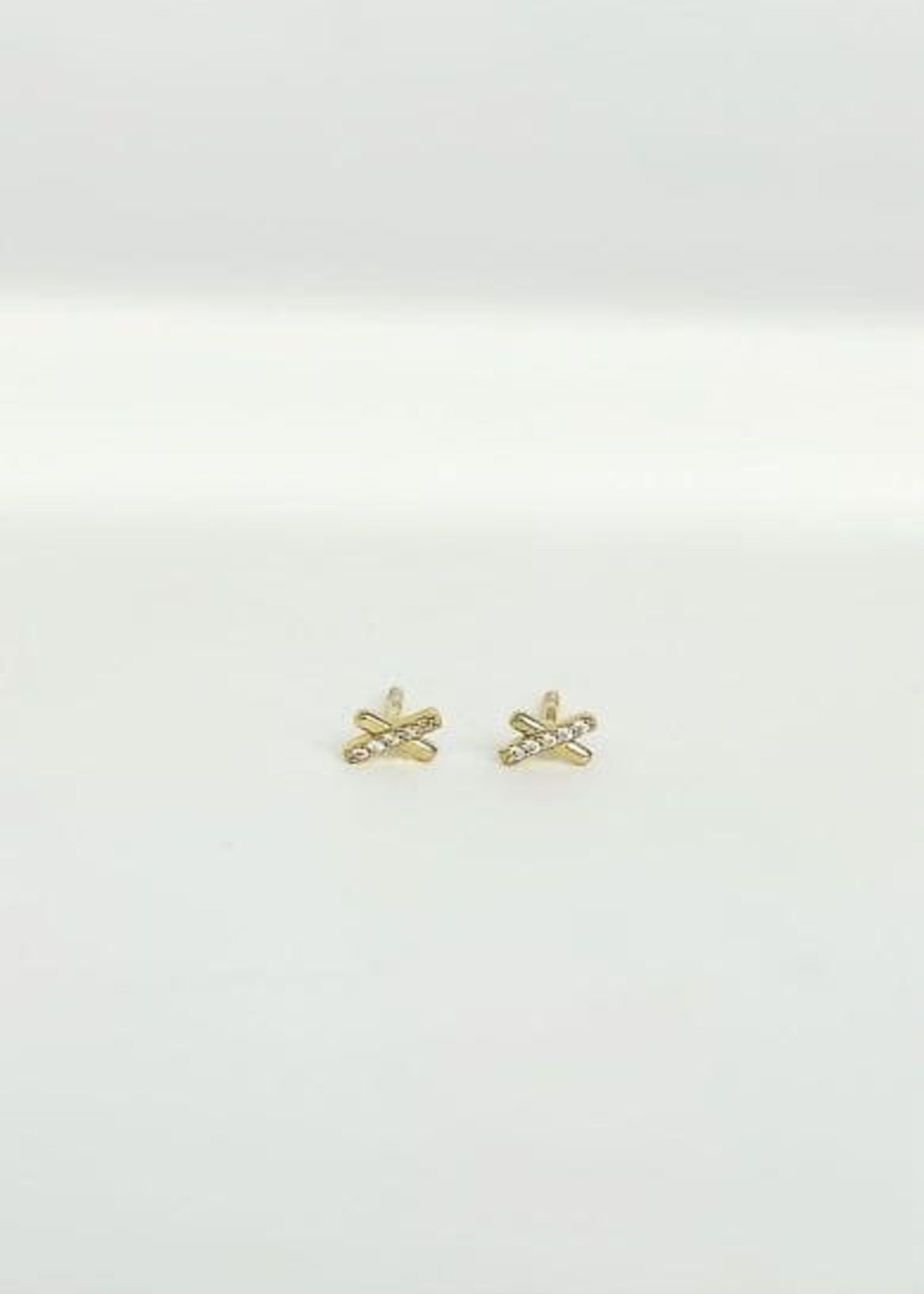 Pendientes de plata con baño de oro tamaño y circonitas, tamaño pequeño.